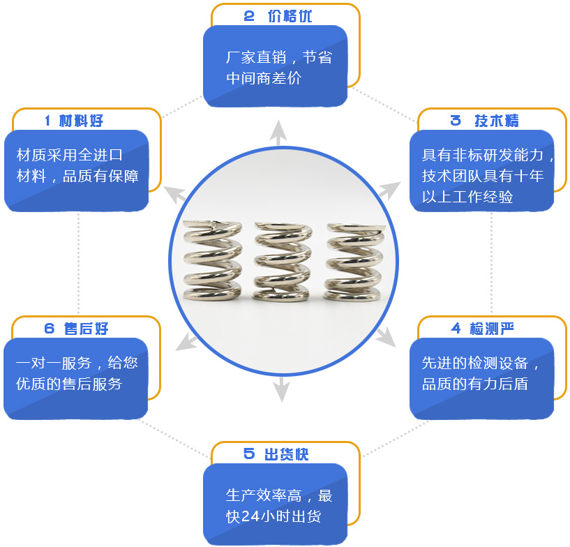 | 不銹鋼絲 (sus) | 有磁、無磁、光面和霧面 (樹脂面、暗面) | 201、202…… | 含鎳量少,達不到鹽霧測試 要求。 | 工藝彈簧多用此材料 |