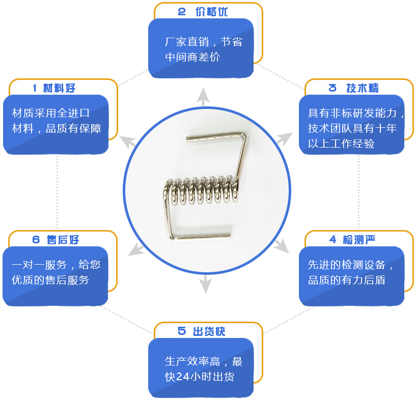 | 不銹鋼絲 (sus) | 有磁、無磁、光面和霧面 (樹脂面、暗面) | 201、202…… | 含鎳量少,達不到鹽霧測試 要求。 | 工藝彈簧多用此材料 |