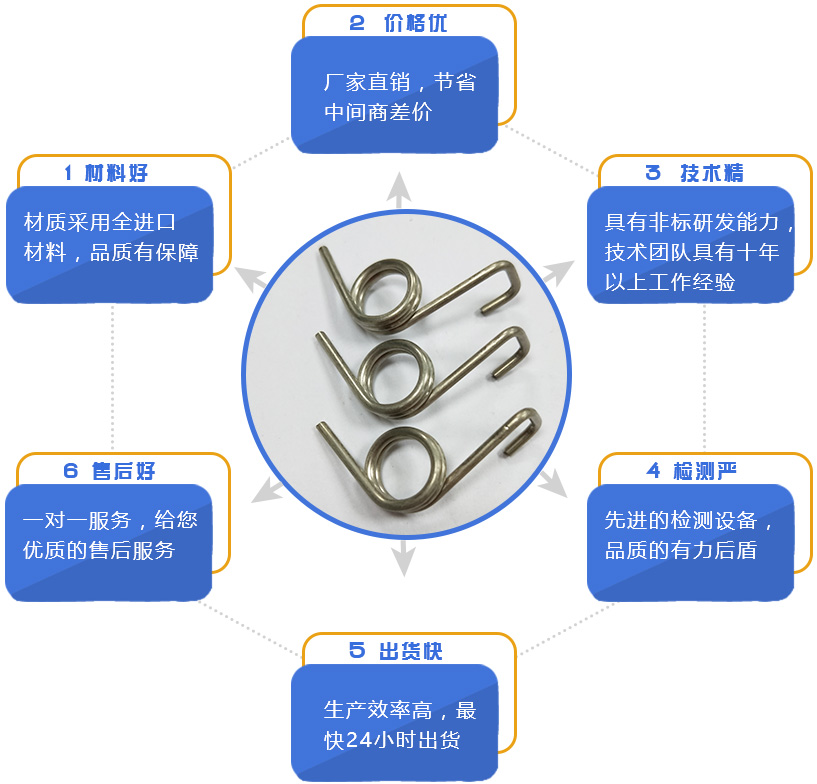 | 不銹鋼絲 (sus) | 有磁、無磁、光面和霧面 (樹脂面、暗面) | 201、202…… | 含鎳量少,達不到鹽霧測試 要求。 | 工藝彈簧多用此材料 |