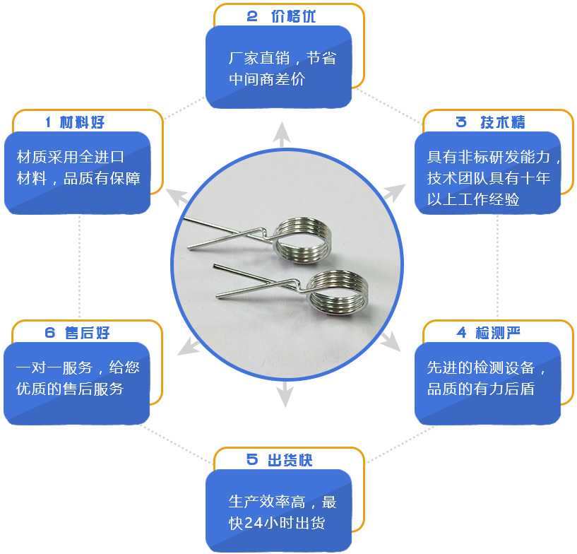 | 不銹鋼絲 (sus) | 有磁、無磁、光面和霧面 (樹脂面、暗面) | 201、202…… | 含鎳量少,達不到鹽霧測試 要求。 | 工藝彈簧多用此材料 |