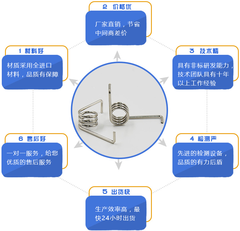 | 不銹鋼絲 (sus) | 有磁、無磁、光面和霧面 (樹脂面、暗面) | 201、202…… | 含鎳量少,達不到鹽霧測試 要求。 | 工藝彈簧多用此材料 |