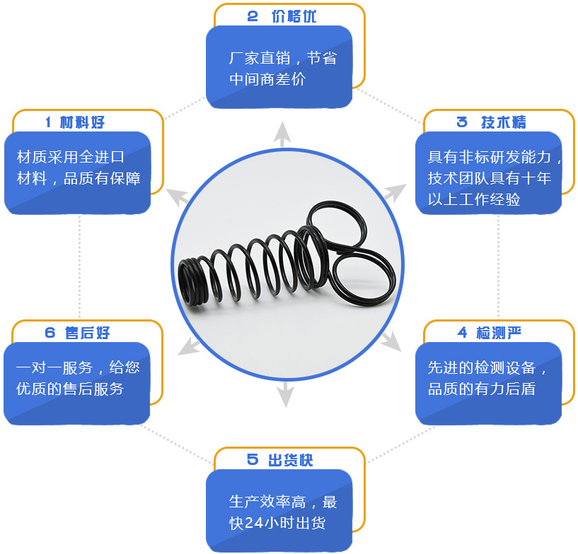 | 不銹鋼絲 (sus) | 有磁、無磁、光面和霧面 (樹脂面、暗面) | 201、202…… | 含鎳量少,達不到鹽霧測試 要求。 | 工藝彈簧多用此材料 |